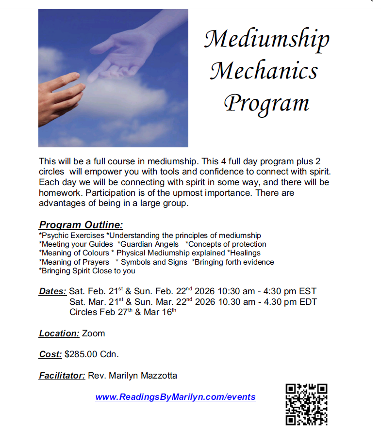 - Feb. 21, 2026 – Mediumship Mechanics – Zoom