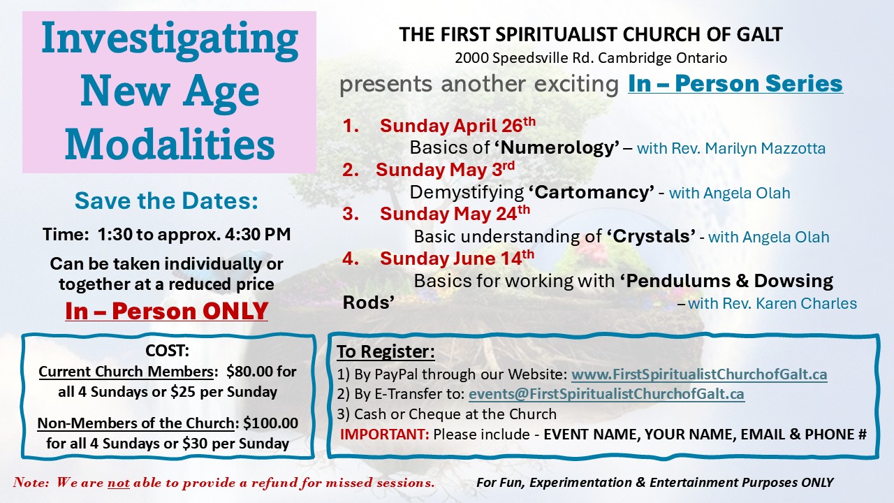 - By E-Transfer to: events@FirstSpiritualistChurchofGalt.ca